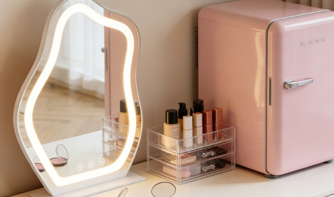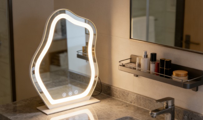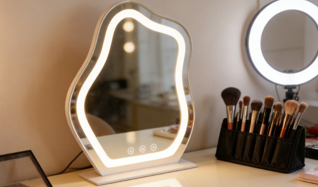 A soft-light vanity mirror that brings a calm, cozy start to every day.