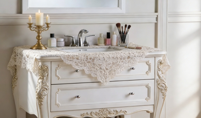 Nordic Cream Vanity, Softly Lit